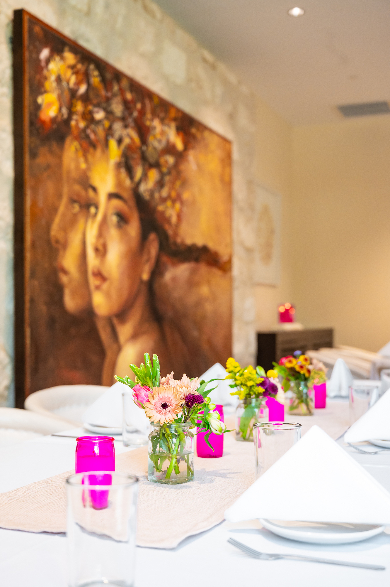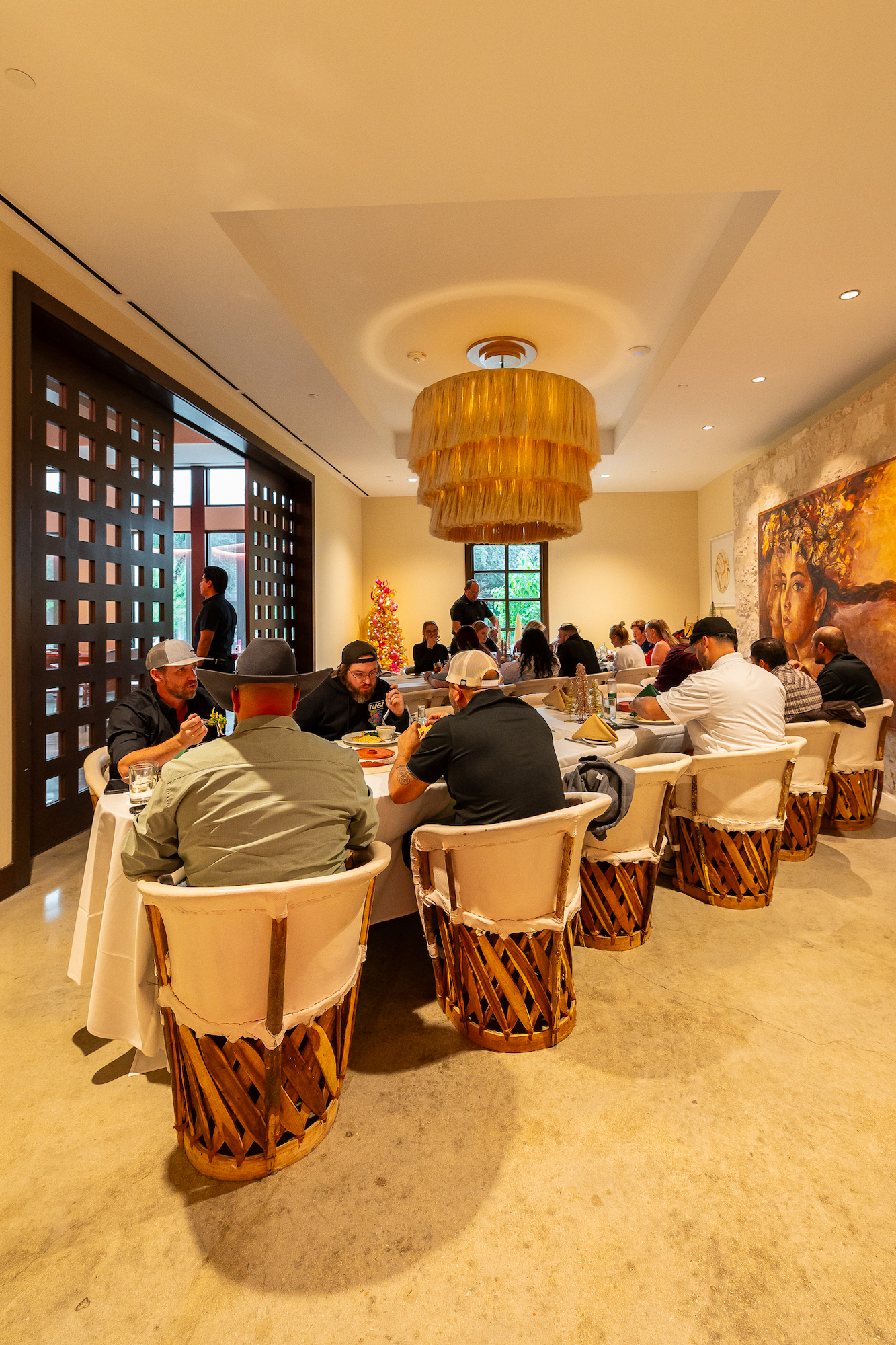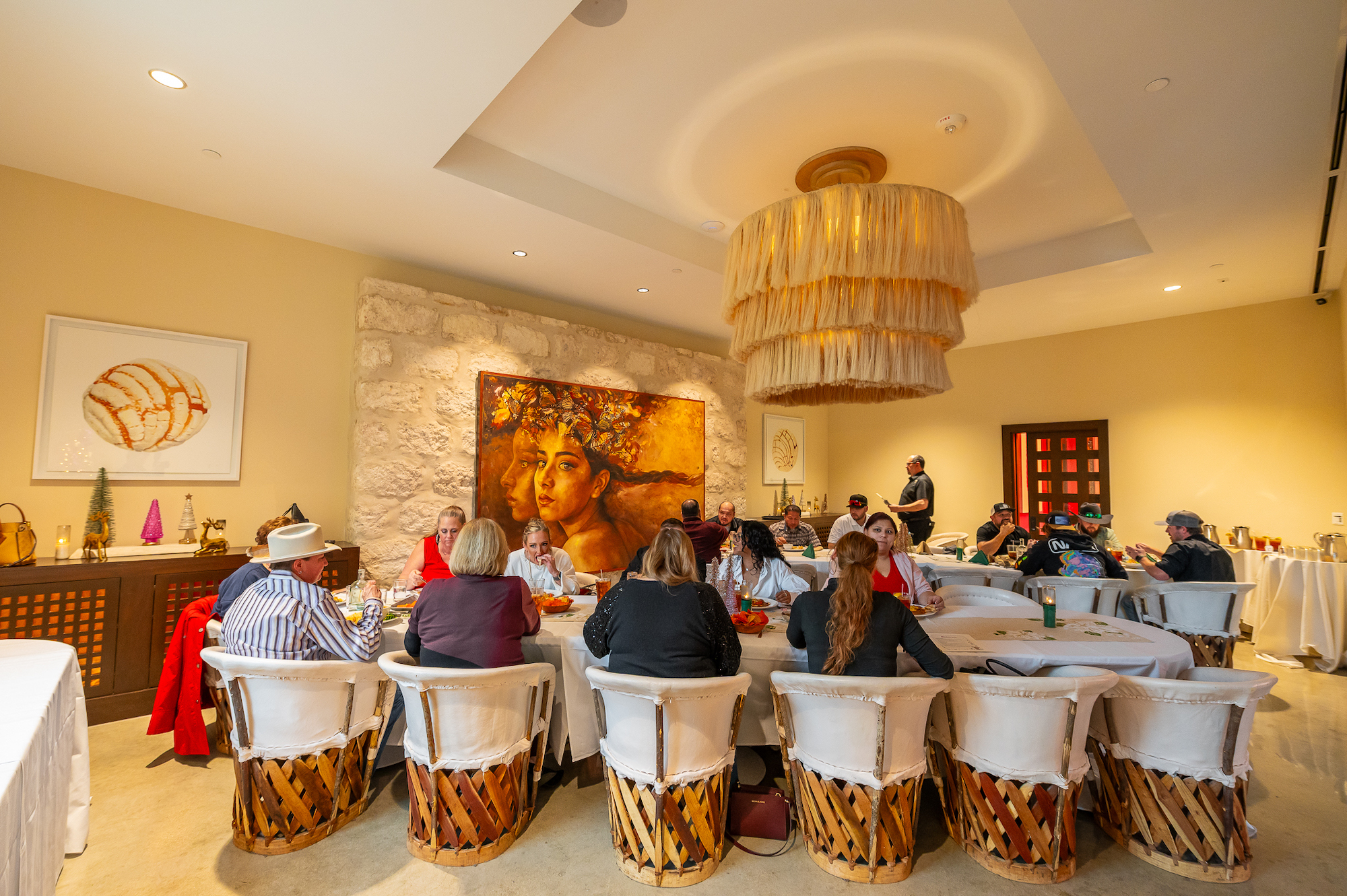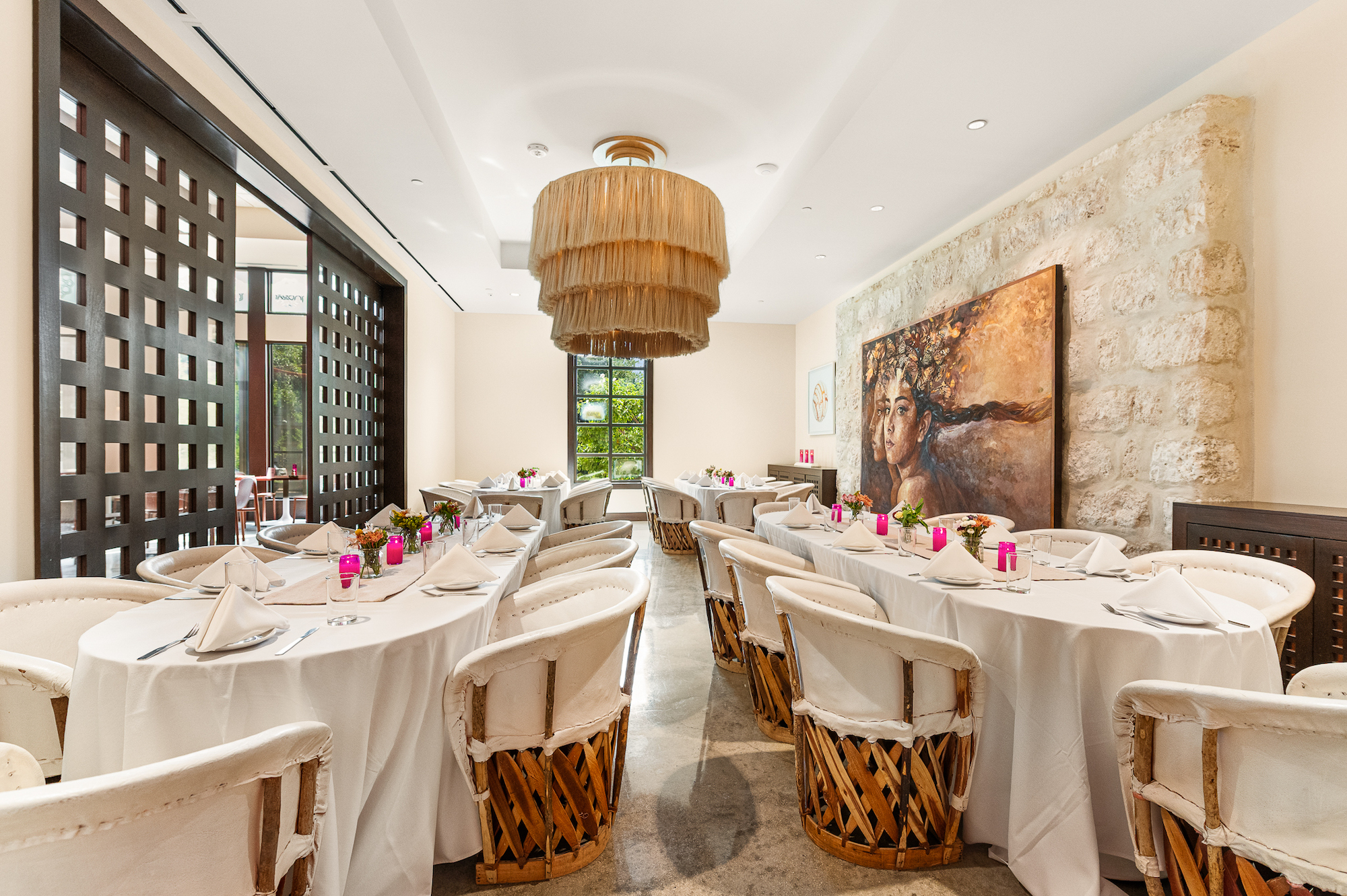 La Caliza accommodates up to 30 seated guests or 40 cocktail-style, making it ideal for smaller, meaningful celebrations. Centerpiece features include a breathtaking chandelier, sunlit windows, and concha artwork by local artist Eva Marengo Sanchez, giving your event an unforgettable ambiance.